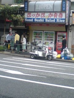 What is puzzling here is what is written in English. “Sand Sushi Salad Rice“. The majority of speakers of English who don’t understand Japanese will probably think that it was a place where people were selling sushi, salad, rice and… sand !?