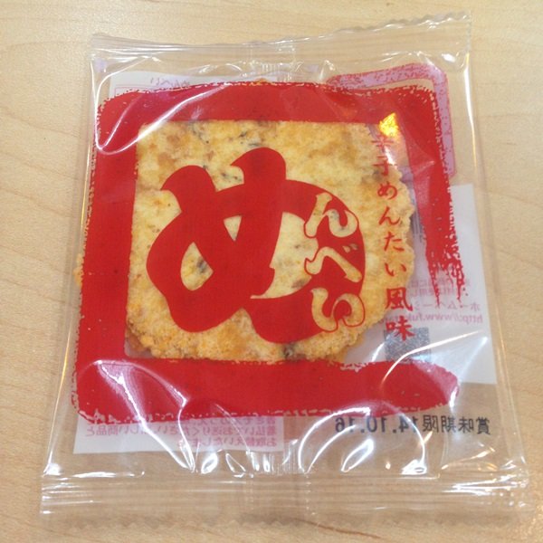 멘타이코 + 센베의 합성어로, 명란맛이 나는 센베과자였는데요.