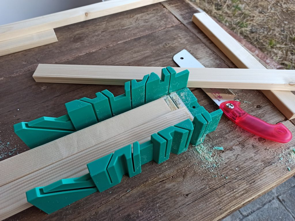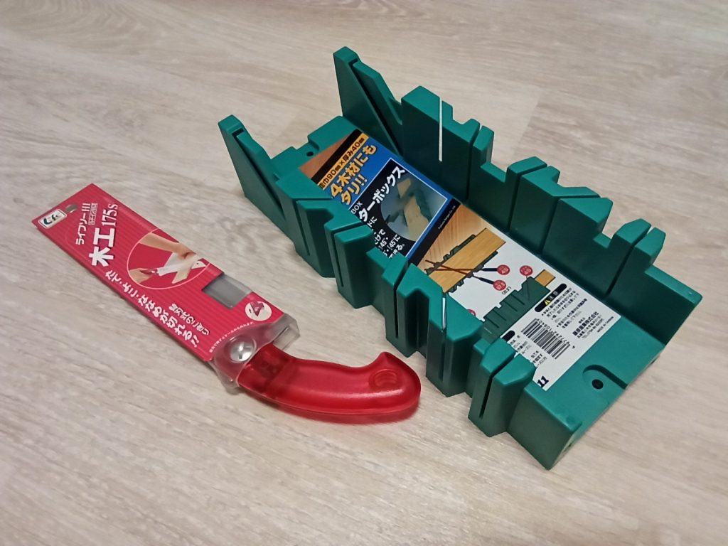 前回はホームセンターの有料木材カットサービスを使ったんですが、木工用ののこぎりと、ワンバイ材をまっすぐ切れる道具も買っちゃいました。