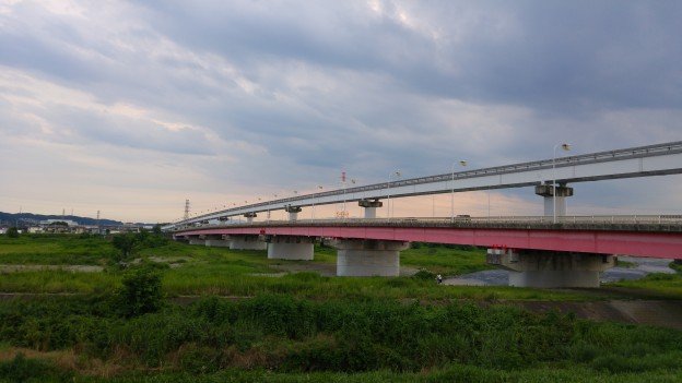 C’était bien cela ! Au bout de ce petit chemin se trouvait de nombreuses cabanes de pêcheurs, ce qui est plutôt bon signe. Après quelques mètres me voilà enfin sur la rive droite de la rivière Tama. Une piste cyclable s’étend le long de ce cours d’eau et à perte de vue.