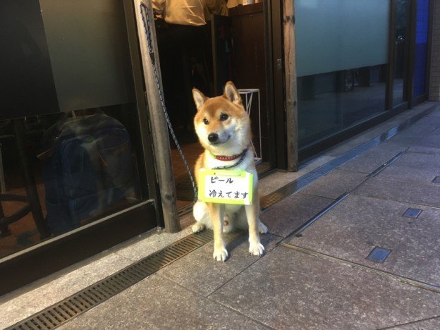 そして、駅に行く途中にグルメシティというスーパーがあるのですが、その手前の居酒屋さんに看板犬がたまたまいました!癒されますね。(ちなみにこの居酒屋さんは元フィンガーファイブの方がやってるらしいです!)