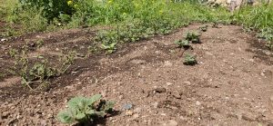 植え付け時に、準備した畝が足りず、あとから追加した畝の方は成長が遅いです。土づくりの効果だろうか。