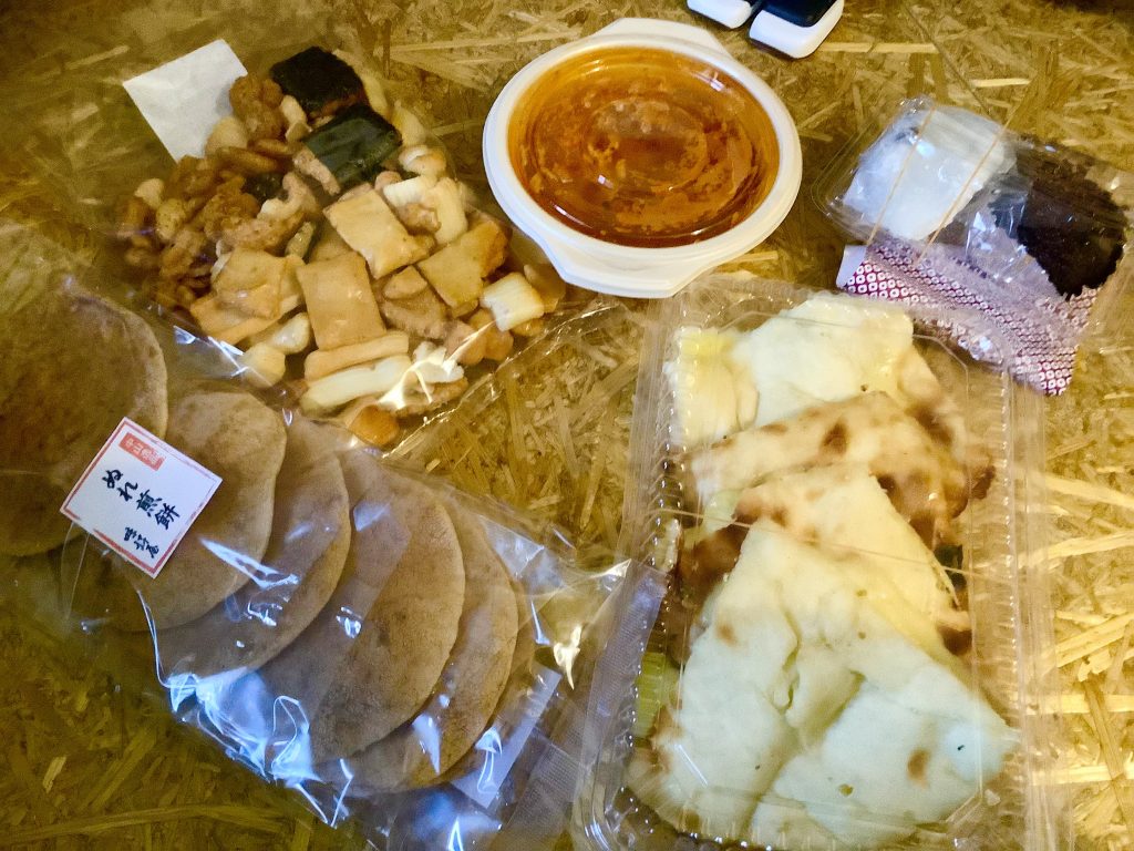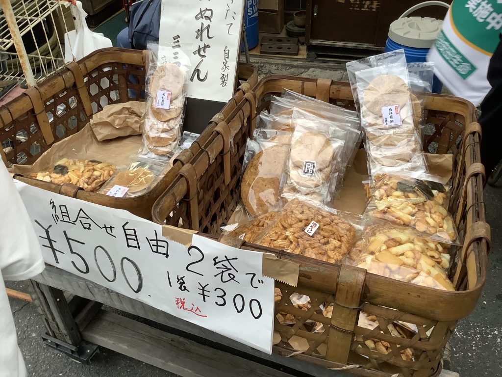 お煎餅屋さん すぐ横で焼きたてを袋づめ。