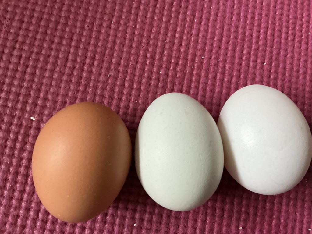 あと、南米のニワトリ。同じ肥料をあげても 卵が青くなるんだとか。