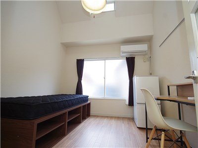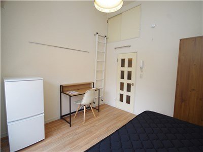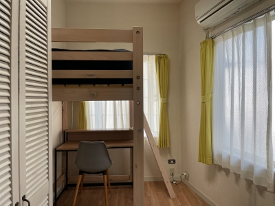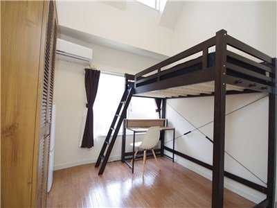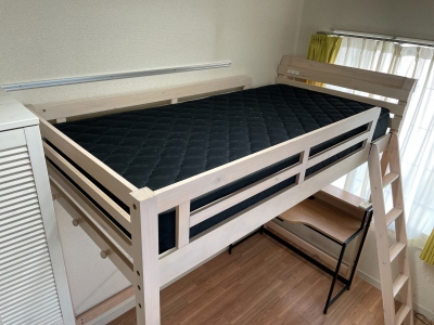 202号室はロフトタイプのベッド。