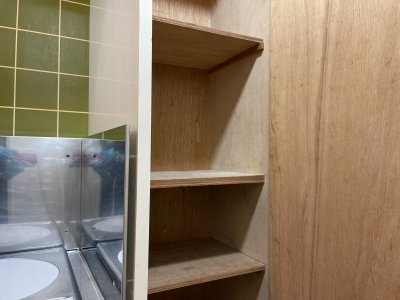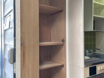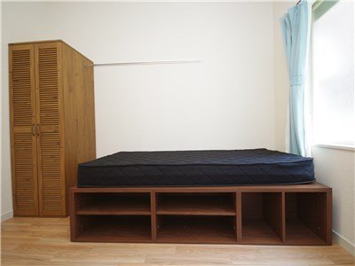 お部屋が広くないので、家具に大めな収納あります。