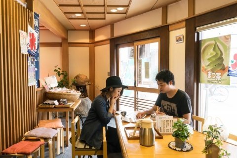 中山道的名產-手工仙貝,150年歷史的老店「萬壽屋」。明亮的店面內販售種類繁多的仙貝,如愛心形狀的仙貝非常可愛。篠崎經理人和AYANO選擇了粗糙海苔仙貝。店內有可以用餐的區域,除了仙貝外,也有刨冰、冰淇淋、白玉紅豆湯等。店員親切的提供熱茶,是可稍作休息的場所!