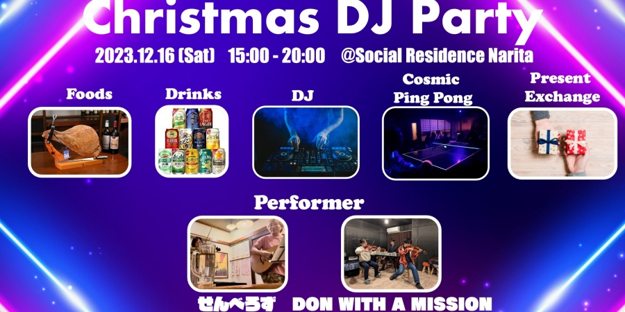 A Christmas DJ party will be held at Social Residence Narita on Saturday, December 16!