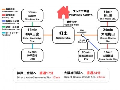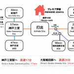 17 minutes direct to Kobe-Sannomiya Station