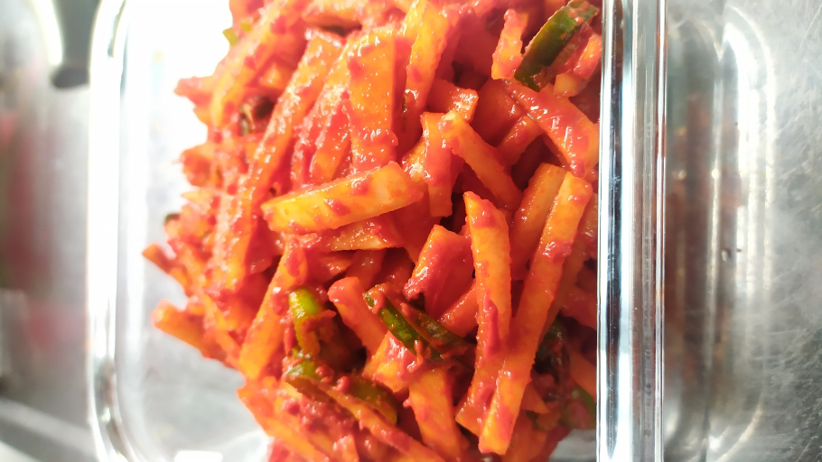 - ボムちゃん 今日作った韓国料理です。 大根(ムセンチェ),ソーセージ炒め作りました。毎週作ってますが味は少し濃いです。 2021-07-05 21:34:20