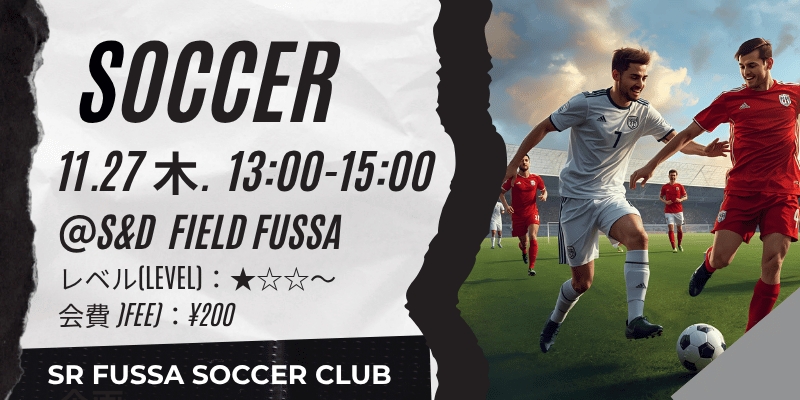 11/27木曜日13-15時サッカー@福生S&Dフィールド