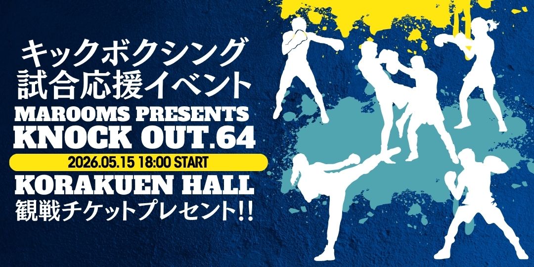 5月15日(金)、東京・後楽園ホールで開催される「MAROOMS presents KNOCK OUT.64」の観戦チケットを、抽選で20名様にプレゼントいたします。