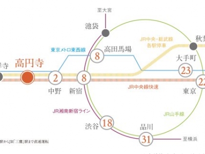 Station2: JR-Sobu line / 8 minute à pied jusqu'à la station KoenjiStation
