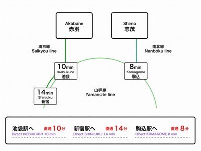 Station3: JR-Saikyo line / 13 minute à pied jusqu'à la station AkabaneStation