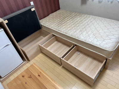 ベットは収納つきです