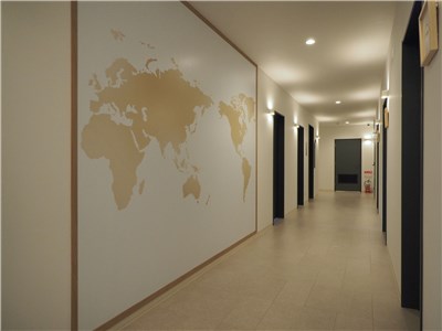 廊下にある世界地図。色々な国の方たちと出会えそうな予感。