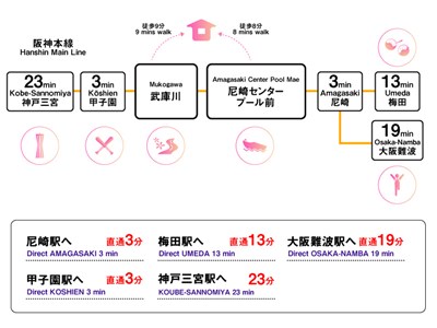 全110室の関西最大級のシェアハウスです!最寄りの武庫川駅は急行停車駅で、大阪梅田まで13分、神戸三宮まで21分とアクセス抜群です。ホテルのような高級感のあるデザインに加え、広々とした共用部と明るい廊下が魅力です。居室は家具家電、Wi-Fi完備で、すぐに新生活をスタートできます。多国籍でフレンドリーな入居者が集まり国際交流も盛ん!周辺にはスーパーやコンビニ、病院など生活に便利な施設が揃っており、近くの武庫川ではジョギングや散歩を楽しむことができます。関西で新しい仲間と出会いながら、便利で快適なシェアハウスライフを始めたい方にはピッタリです!