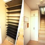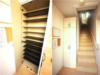 日差しがまぶしい階段と靴箱