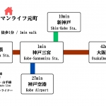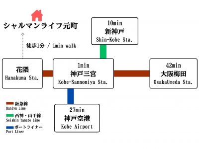 - 터미널역 고베산노미야(한신) 역까지 하나쿠마 역에서 3 분