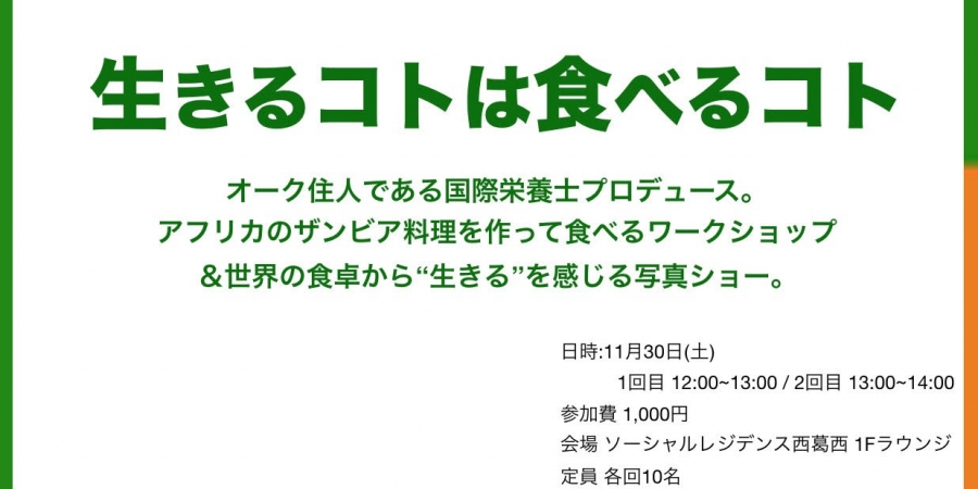 오크하우스 거주자인 국제영양사 프로듀스. 아프리카 잠비아 음식을 만들어 먹는 워크숍&세계의 식탁에서 "사는 것"을 느끼는 사진쇼.