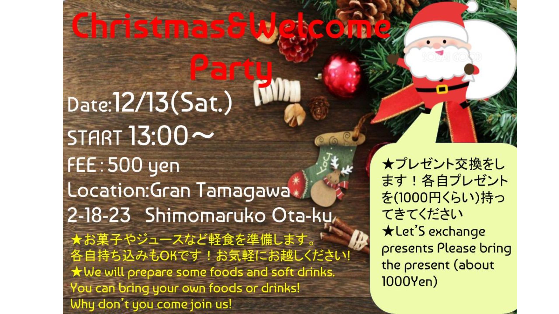 참가자유Meeting Place: JR Kanda Station West Exit (Bus Roman Gate)
