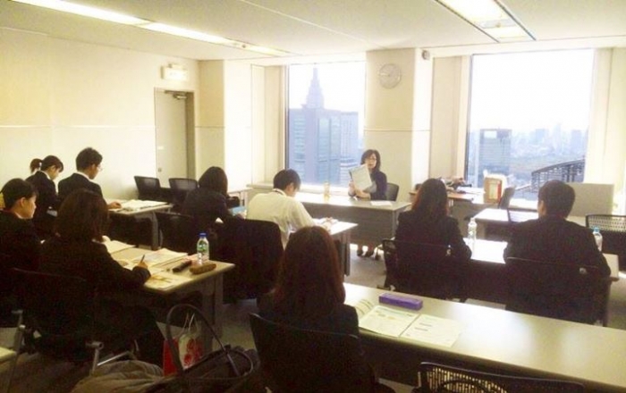 研修の様子。入社時の導入研修(原則4日間)+フォローアップ研修(原則毎月1日・合計6日間)と合せて10日間。お給料をもらいながら、平日に研修を受けることができる