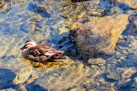 サギやカモなどの野鳥が生息。水中の足の動きまで見えるほど透明度が高い。