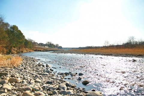 公園の横を流れる多摩川の上水